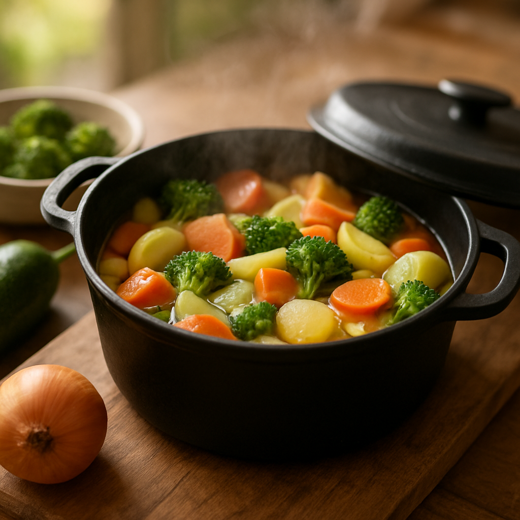 - 2) Ajoute légumes en dés (carotte, petits pois, poivron) + restes de viande ou tofu.